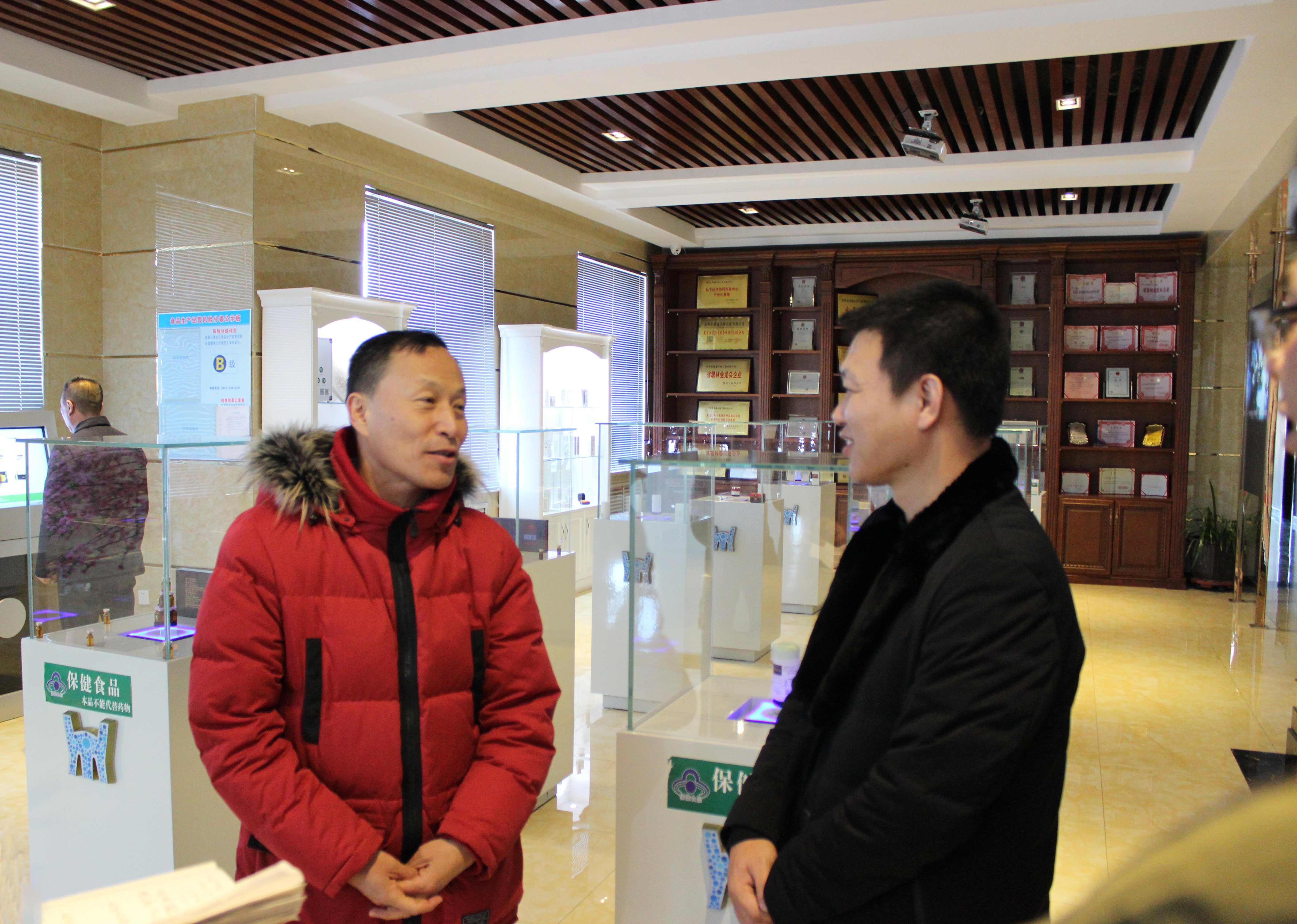 2019年1月15日,民革黑龍江省委秘書長袁偉東一行到延壽縣視察監(jiān)督精準(zhǔn)扶貧,脫貧攻堅工作。在延壽縣委常委張東來、延壽縣委常委、統(tǒng)戰(zhàn)部長張淑英等領(lǐng)導(dǎo)陪同下蒞臨延壽縣鼎鑫生物工程有限公司視察企業(yè)發(fā)展?fàn)顩r。公司董事長任中國親自接待并匯報鼎鑫沙棘產(chǎn)業(yè)在精準(zhǔn)扶貧、脫貧攻堅方面開展的爭先創(chuàng)優(yōu)工作。公司執(zhí)行總經(jīng)理張建東、副總經(jīng)理鄭松濤等領(lǐng)導(dǎo)陪同接待。